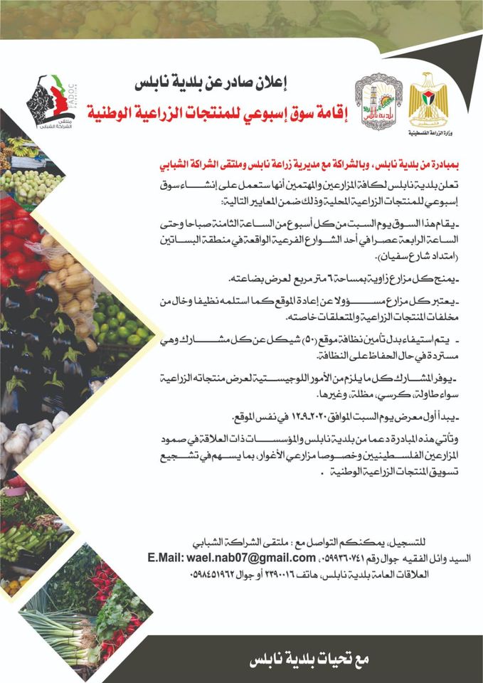 اعلان عن تنظيم سوق للمنتجات الزراعية