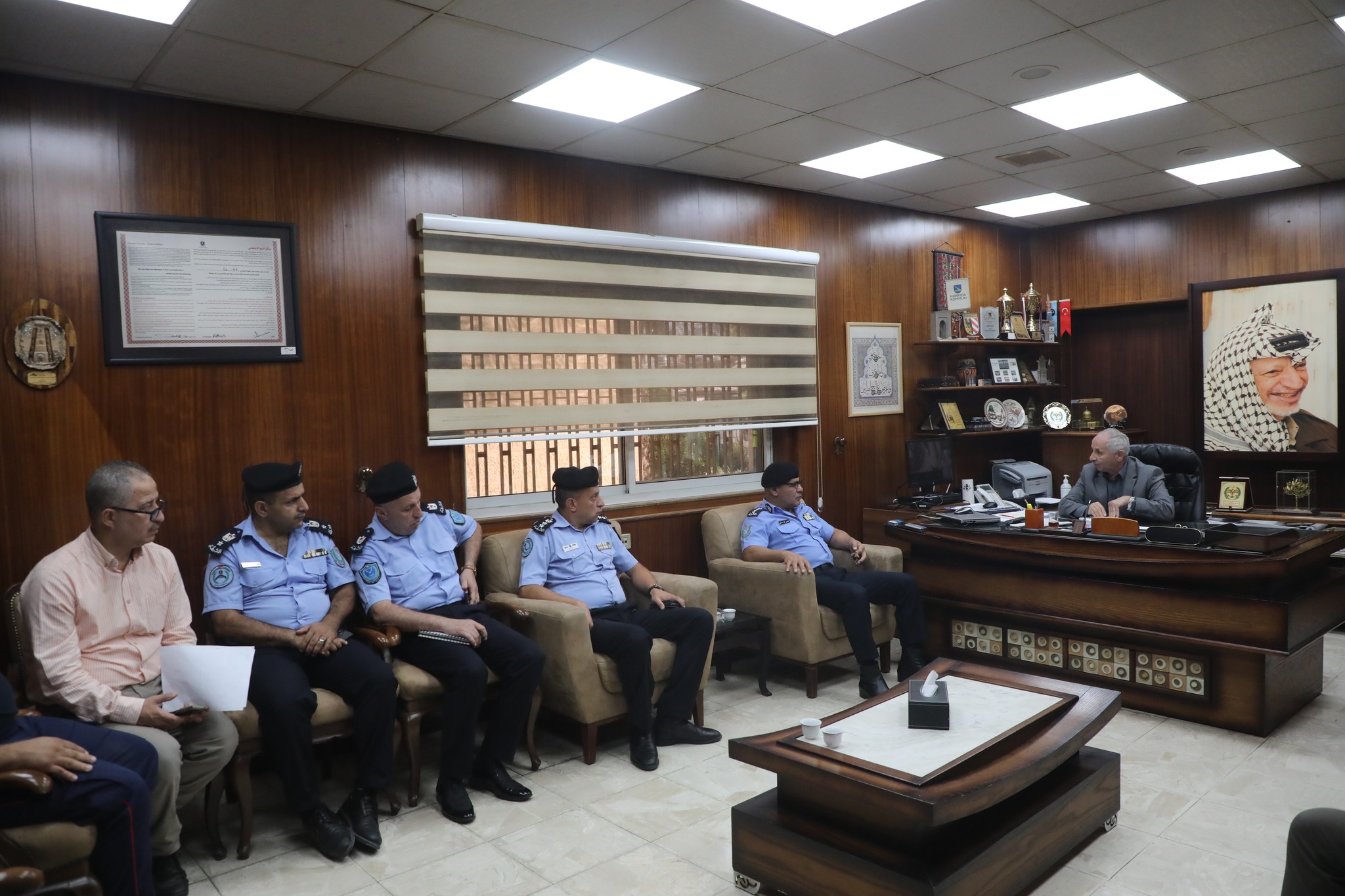زار مدير شرطة نابلس العميد عيسى أبو علان بلدية نابلس ، واستقبله رئيس البلدية الدكتور حسام الشخشير بحضور الدكتورة زهرة الواوي نائب الرئيس وعدد من الموظفين الإداريين من ذوي العلاقة، وبمشاركة العقيد صباح طميزي مدير فرع الأمن الداخلي،و المقدم إياد اشتيه مدير فرع الشؤون الإدارية في الشرطة .