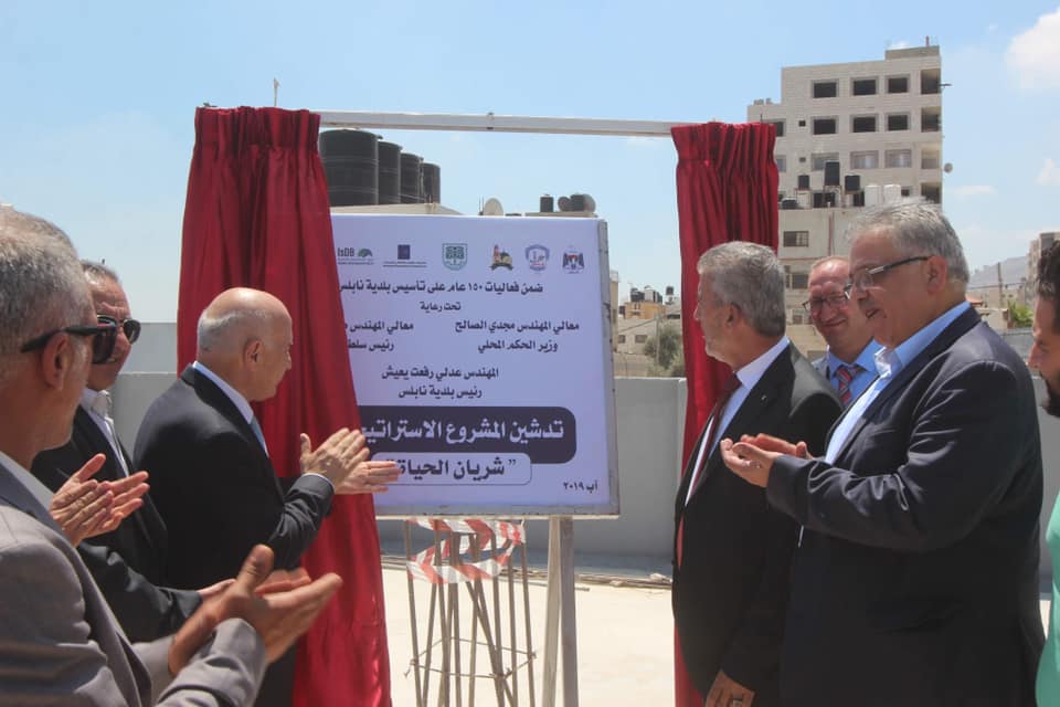 نابلس 20-8-2019 وفــا- افتتحت بلدية نابلس، اليوم الثلاثاء، مركز الخدمات والطوارئ الغربي بالمدينة، وأطلقت مشروع "شريان الحياة"، الخط الناقل للمياه الممتد من بئر الباذان باتجاه مضخة المساكن.