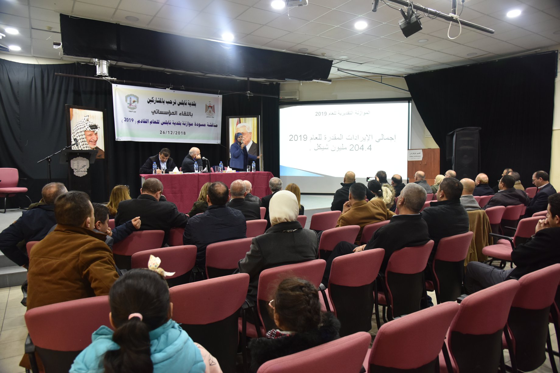 ومن ثم عرضت مسودة موازنة بلدية نابلس التقديرية للعام 2019 والتي من المتوقع أن تبلغ ايراداتها السنوية للعام 2019 ما قيمته 204.4 مليون شيكل، أما بالنسبة للمصاريف السنوية فمن من المتوقع ان تصل الى 203.7 مليون شيكل، مع توقعات تحقيق وفر يبلغ 700 ألف شيكل خلال العام 2019 .