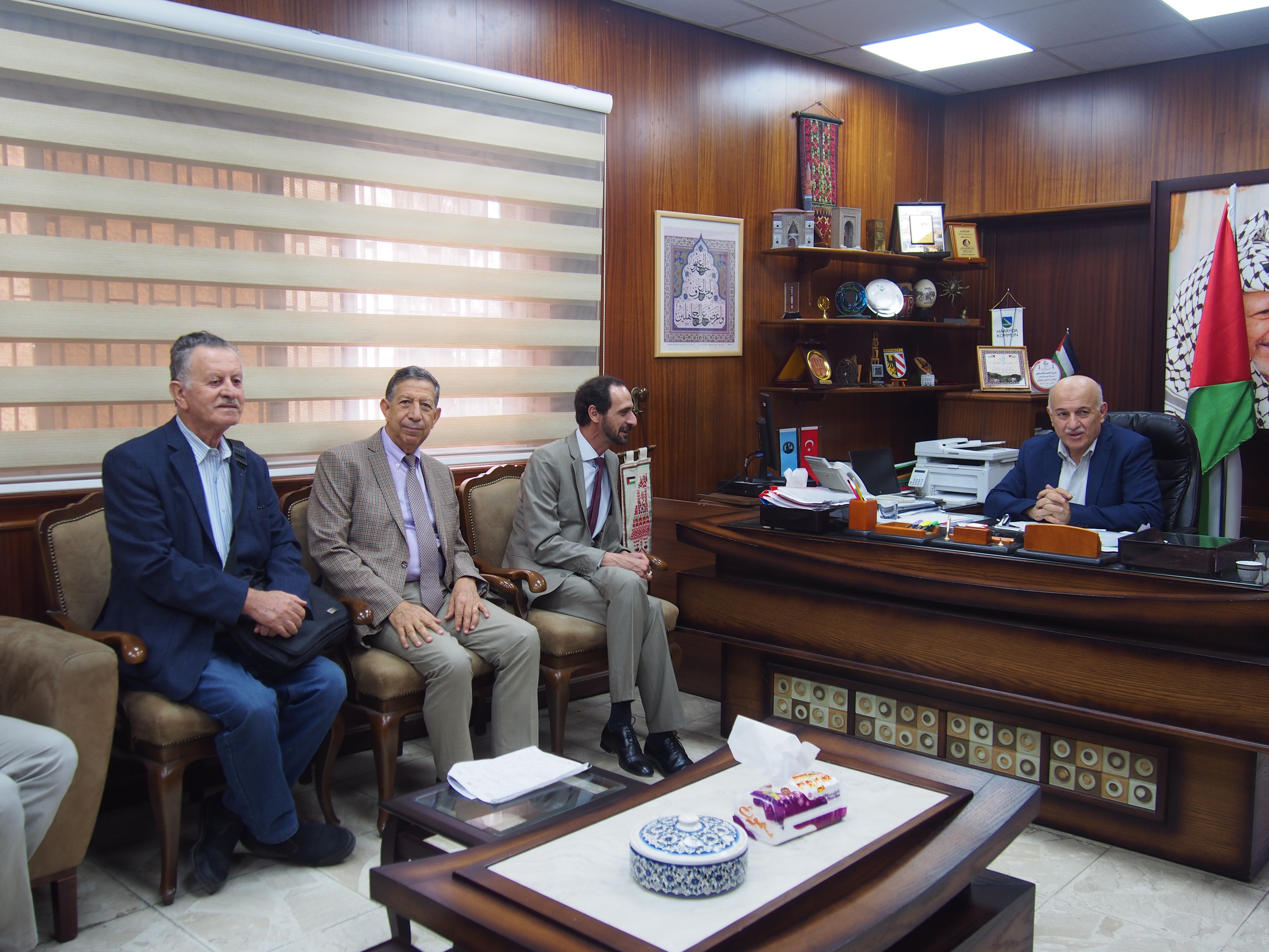 استقبل المهندس عدلي رفعت يعيش، رئيس بلدية نابلس في مكتبه اليوم الخبير الدولي بالآثار الدكتور منير بشناقي، والدكتور منير أنيسطاس السفير الدائم لفلسطين في اليونسكو، بالاضافة الى الدكتور معاوية ابراهيم النائب الاكاديمي لرئيس جامعة الاستقلال ، يرافقهم الدكتور أحمد الرجوب مدير عام التراث العالمي في وزراة السياحة والآثار، والسيد ايهاب داوود مدير عام الترميم وادارة المواقع في الوزارة.