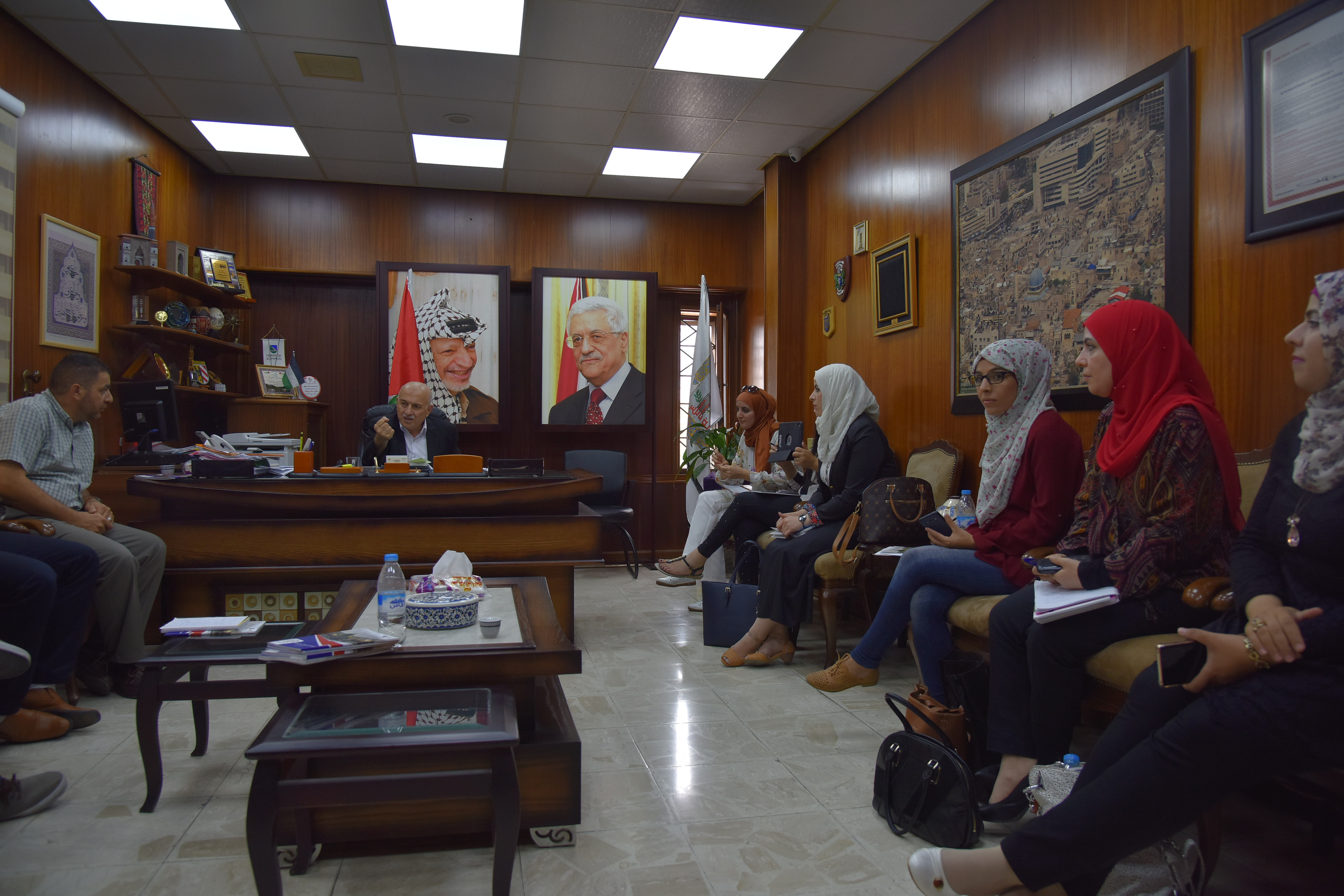 ضمن مساق التخطيط والإدارة الاستراتيجية في الهيئات المحلية وبإشراف مدرس المساق د. خالد رجب، نظمت دائرة الحقوق والإدارة العامة زيارة إلى بلدية نابلس وذلك للدمج بين الناحية النظرية والعملية في التدريس، وتعريف طلبة المساق بخبرات التخطيط الاستراتيجي خاصة ان بلدية نابلس من البلديات السباقة في مجال التخطيط الاستراتيجي، وتحدث المهندس عدلي يعيش رئيس بلدية نابلس عن اهمية التخطيط التنموي الاستراتيجي والذي يحدث تنمية اقتصادية واجتماعية شاملة وبمشاركة مجتمعية فاعلة من خلال تطويرخطة استراتيجية تنموية بحيث تتضمن رؤية المدينة والأهداف الاستراتيجية المقرر تحقيقها خلال المرحلة القادمة وبما يسهم في تحقيق التنمية المستدامة التي تخدم المجتمع المحلي وتعجل من تقدمه وتحقق تطلعاتها لمستقبلية.