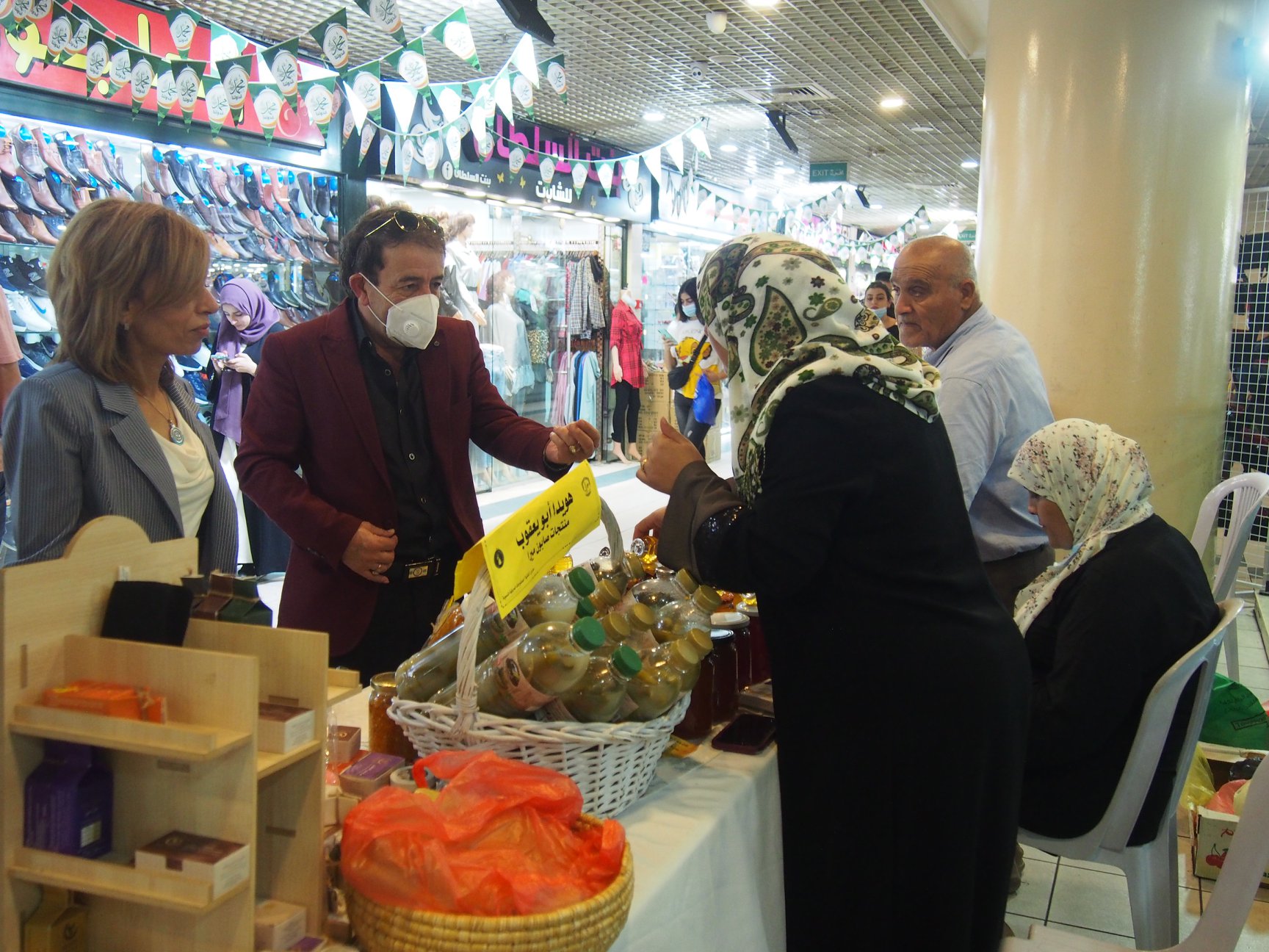 للأسبوع الرابع، وبعد نقله من الدوار الى المجمع التجاري، جانب من زوايا سوق "المنشية" للمنتوجات الحرفية والنسوية ، والذي يتم تنفيذه بالتعاون ما بين بلدية نابلس والاتحاد العام للمرأة الفلسطينية.