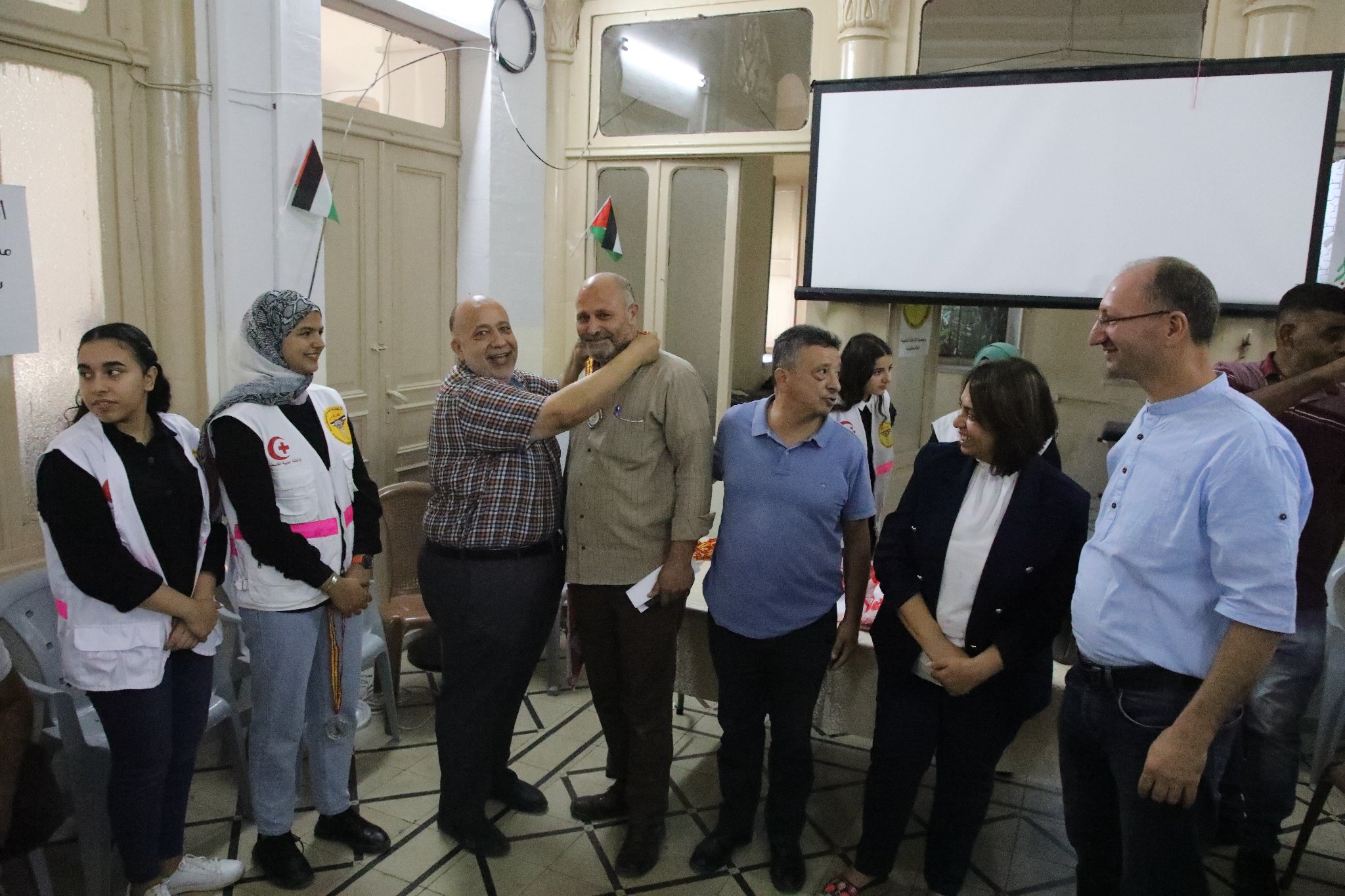 نظم مركز تدريب الشباب المجتمعي التابع لجمعية الاغاثه الطبيه حفل تكريم لمجموعة من عمال النظافة في قسم الصحة في بلدية نابلس، بحضور الدكتورة زهرة واوي عضو المجلس البلدي، والسيد ضرار طوقان رئيس نقابة العاملين في البلدية والسيد علاء الجيطان من قسم العلاقات العامة والدولية في بلدية نابلس.