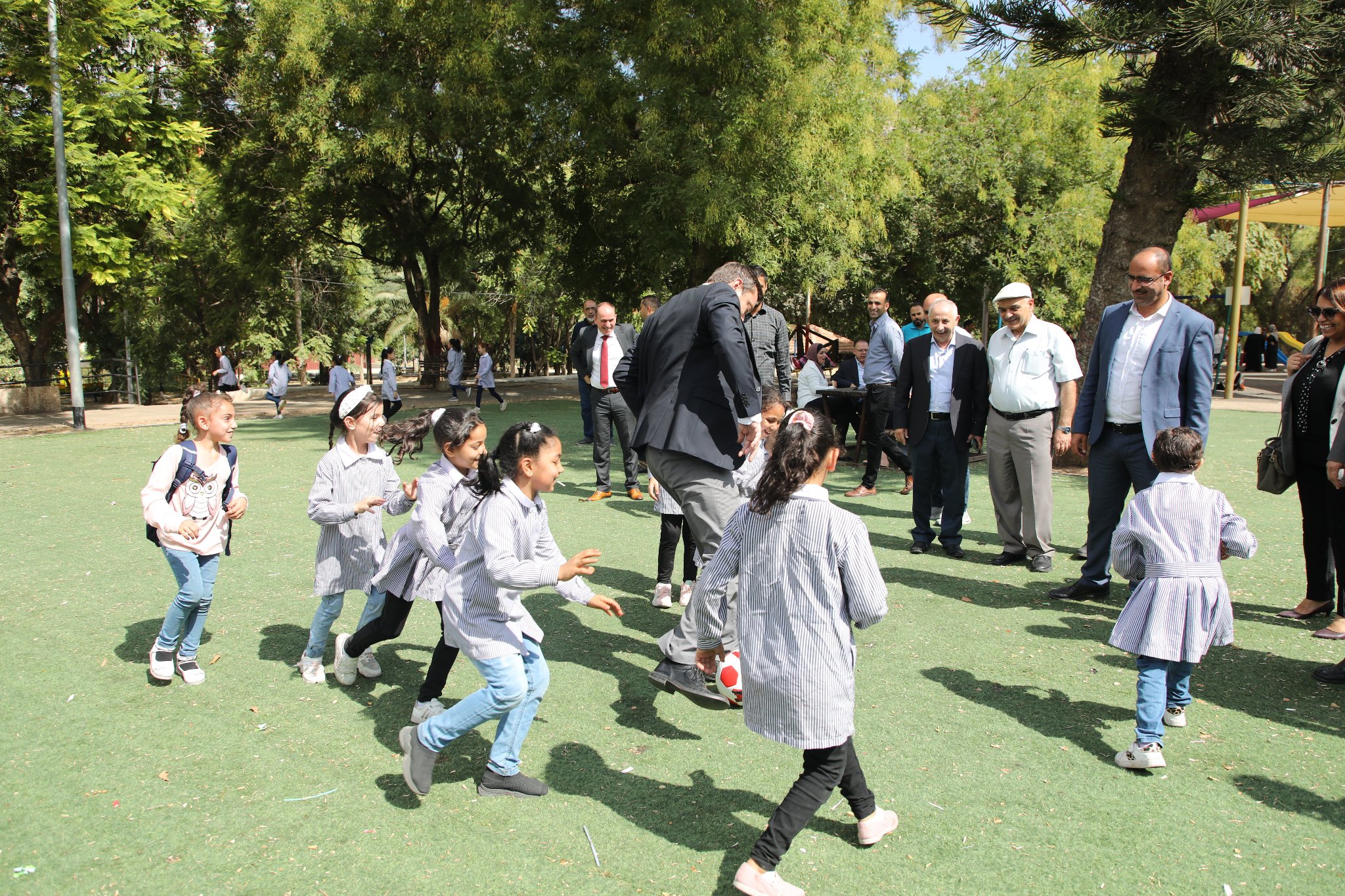 جانب من زيارة السفير الدنماركي في فلسطين السيد كيتل كارلسن برفقة وزير الحكم المحلي المهندس مجدي الصالح ومدير عام صندوق تطوير وإقراض الهيئات المحلية السيد محمد الرمحي، ومدير عام الحكم المحلي في محافظة نابلس السيد خالد اشتية إلى حدائق جمال عبد الناصر للاطلاع على مشروعي تأهيل جزء من حدائق جمال عبد الناصر وحديقة كبار السن، واللذان تم تنفيذهما بدعم من الحكومة الدنماركية من خلال صندوق تطوير وإقراض الهيئات المحلية. ويهدف المشروعين إلى خلق بيئة آمنة ومناسبة لكبار السن والأطفال لقضاء وقت فراغهم واللعب في مساحات لم تكن مستخدمة سابقا. الوقت وأطلع رئيس بلدية نابلس الدكتور سامي حجاوي وعدد من أعضاء المجلس البلدي الوفد الضيف على خطط بلدية نابلس لتطوير الحدائق العامة وزيادة الرقعة الخضراء في نابلس، مثمنا دور الحكومة الدنماركية وصندوق تطوير وإقراض الهيئات المحلية في دعم مثل هذه المشاريع.