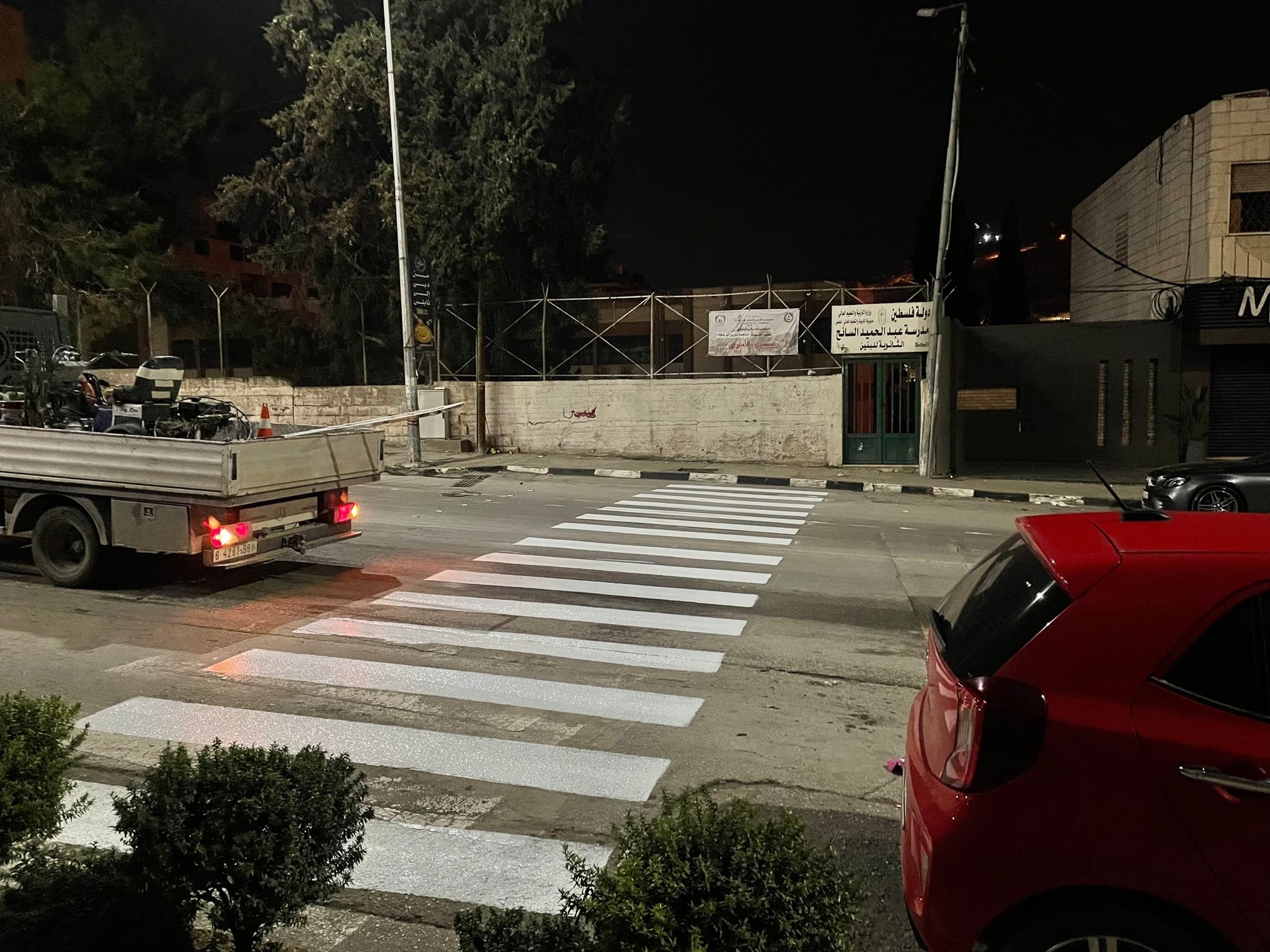 طواقم بلدية نابلس تواصل دهان وتخطيط عدد من الشوارع
