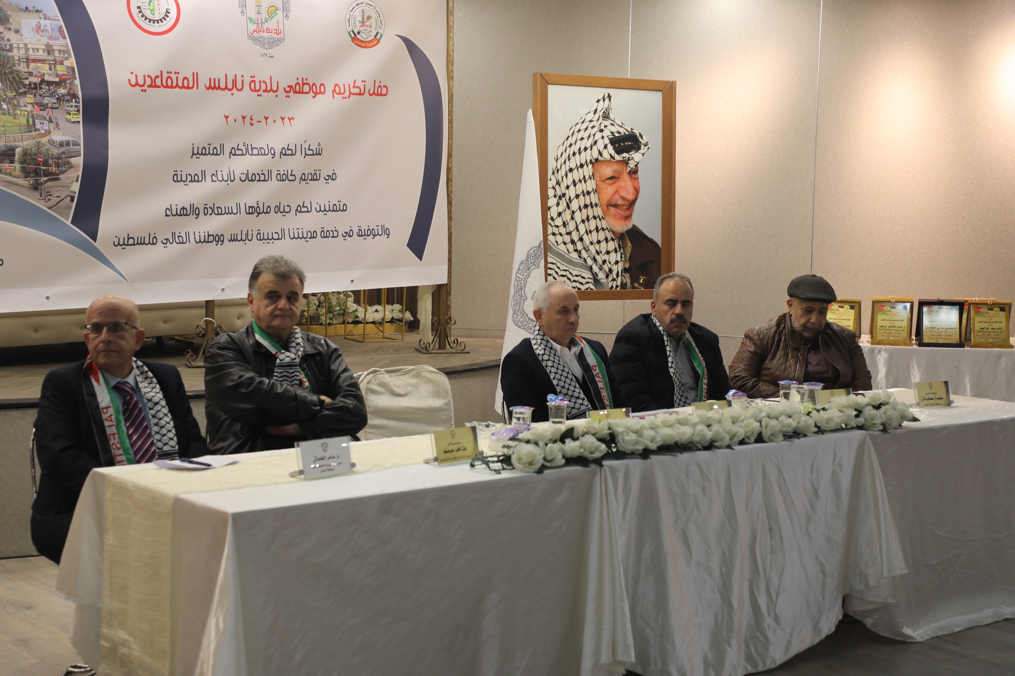 وحضر الحفل الذي شارك فيه المتقاعدون وذويهم، محافظ نابلس الأستاذ غسان دغلس، وأمين عام اتحاد نقابات عمال فلسطين السيد شاهر سعد، وأمين سر إقليم حركة فتح في محافظة نابلس السيد محمد حمدان (أبو المعتز)، ومدير عام مديرية الحكم المحلي في محافظة نابلس المهندس سامر الخماش ورئيس رابطة أوفياء بلدية نابلس الأستاذ ضرار طوقان، وممثلو عدد من مؤسسات المدينة وفعالياتها، وعدد من أعضاء المجلس البلدي، ورئيس وأعضاء نقابة العاملين في بلدية نابلس، ورؤساء الدوائر والاقسام في البلدية.