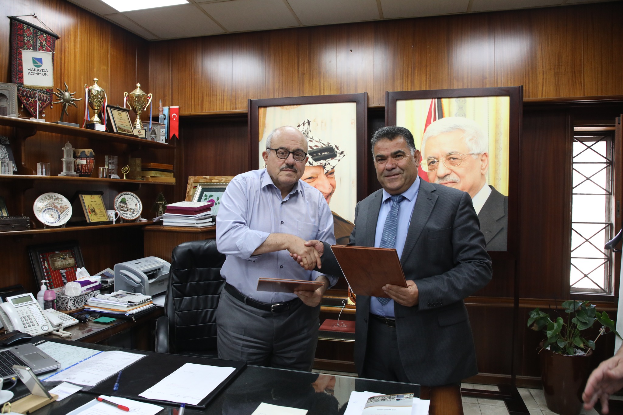 جانب من توقيع رئيس بلدية نابلس الدكتور سامي أحمد حجاوي ، وبحضور المهندس سليمان أبو غوش مستشار المشاريع الألمانية، اتفاقية توريد 15 ألف شتلة زيتون ، المُحال على شركة مشاتل الجنيدي الحديثة ضمن مشروع إعادة استخدام المياه المعالجة من محطة التنقية الغربية الممول من قبل الحكومة الألمانية عن طريق بنك التنمية الألماني KfW بقيمة أجمالية للعطاء تزيد عن 300 ألف شيكل .
