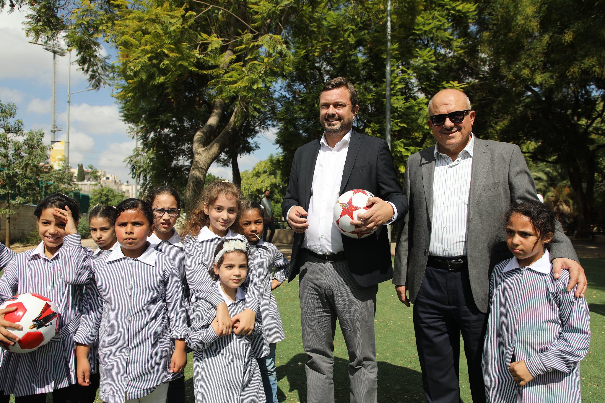 جانب من زيارة السفير الدنماركي في فلسطين السيد كيتل كارلسن برفقة وزير الحكم المحلي المهندس مجدي الصالح ومدير عام صندوق تطوير وإقراض الهيئات المحلية السيد محمد الرمحي، ومدير عام الحكم المحلي في محافظة نابلس السيد خالد اشتية إلى حدائق جمال عبد الناصر للاطلاع على مشروعي تأهيل جزء من حدائق جمال عبد الناصر وحديقة كبار السن، واللذان تم تنفيذهما بدعم من الحكومة الدنماركية من خلال صندوق تطوير وإقراض الهيئات المحلية. ويهدف المشروعين إلى خلق بيئة آمنة ومناسبة لكبار السن والأطفال لقضاء وقت فراغهم واللعب في مساحات لم تكن مستخدمة سابقا. الوقت وأطلع رئيس بلدية نابلس الدكتور سامي حجاوي وعدد من أعضاء المجلس البلدي الوفد الضيف على خطط بلدية نابلس لتطوير الحدائق العامة وزيادة الرقعة الخضراء في نابلس، مثمنا دور الحكومة الدنماركية وصندوق تطوير وإقراض الهيئات المحلية في دعم مثل هذه المشاريع.