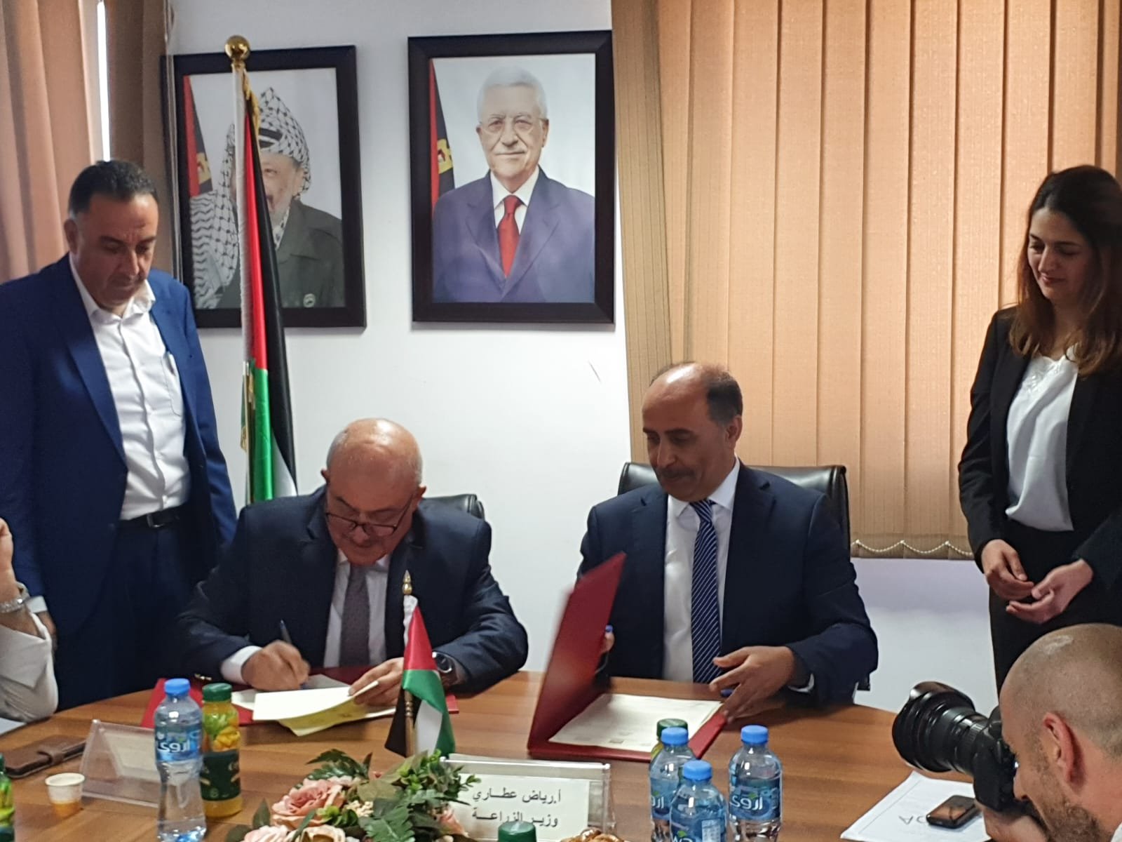 شهد مقر وزارة الزراعة برام الله يوم أمس، مراسم توقيع اتفاقية هامة بين بلدية نابلس والوزارة، يتم بموجبها توفير قطعة أرض حكومية مساحتها 18 دونما في المنطقة الشرقية، ستقوم البلدية بتأهيلها وتحويلها إلى متنزه مفتوح يخدم أهالي المنطقة وزوارها. ووقع هذه الاتفاقية كلا من الأستاذ رياض عطاري وزير الزراعة، والدكتور سامي حجاوي رئيس بلدية نابلس.