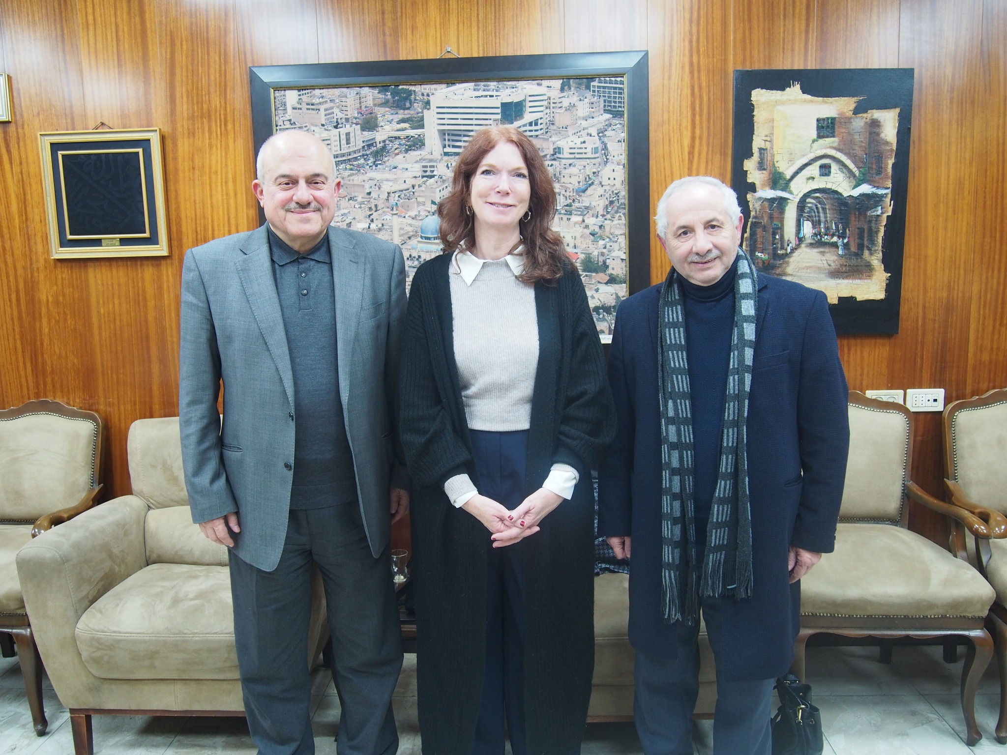استقبل رئيس بلدية نابلس الدكتور سامي حجاوي في مكتبه ظهر اليوم السيدة سارة بول، الممثل الخاص لبرنامج الأمم المتحدة الإنمائي / برنامج مساعدة الشعب الفلسطيني (UNDP/PAPP) والوفد المرافق لها، بحضور الدكتور حسام الشخشير، نائب رئيس بلدية نابلس.