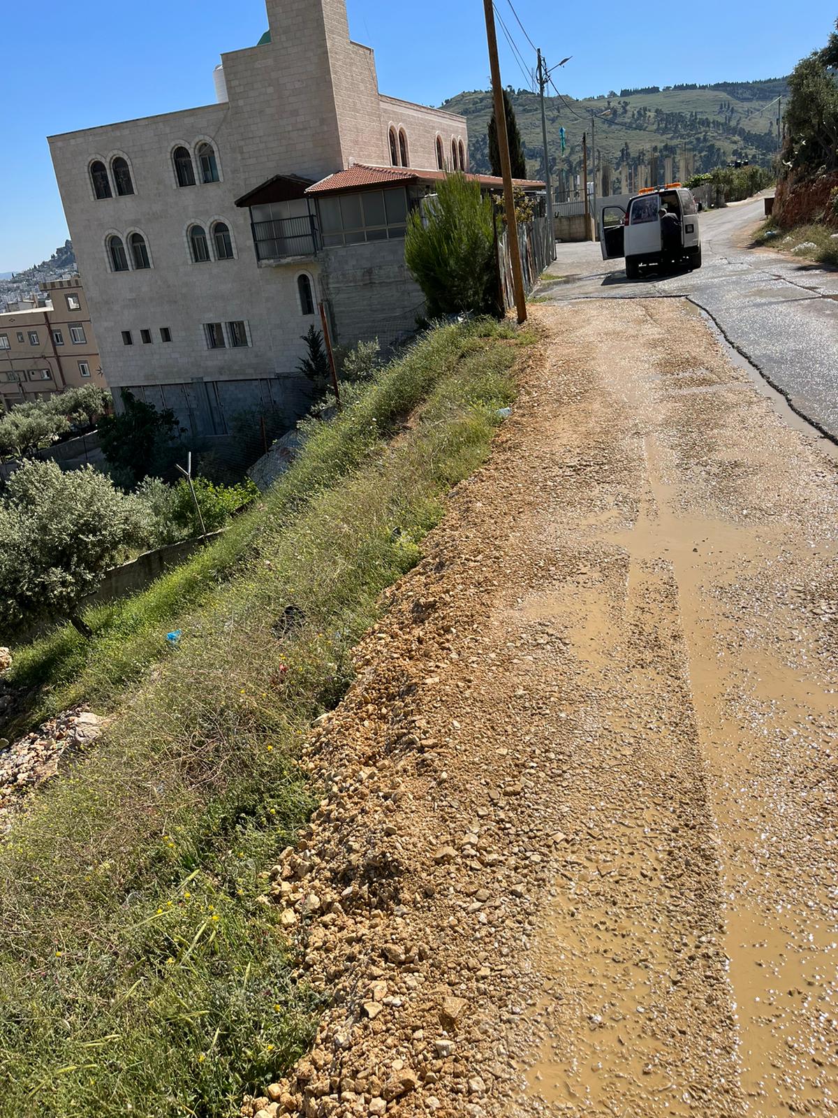 قسم الأشغال – الدائرة الهندسية :- جانب من أعمال توسيع شارع عسكر البلد بطول 300 متر، من جهة مسجد الحمد وحتى شارع مدرسة ملحس تمهيدا للتعبيد.