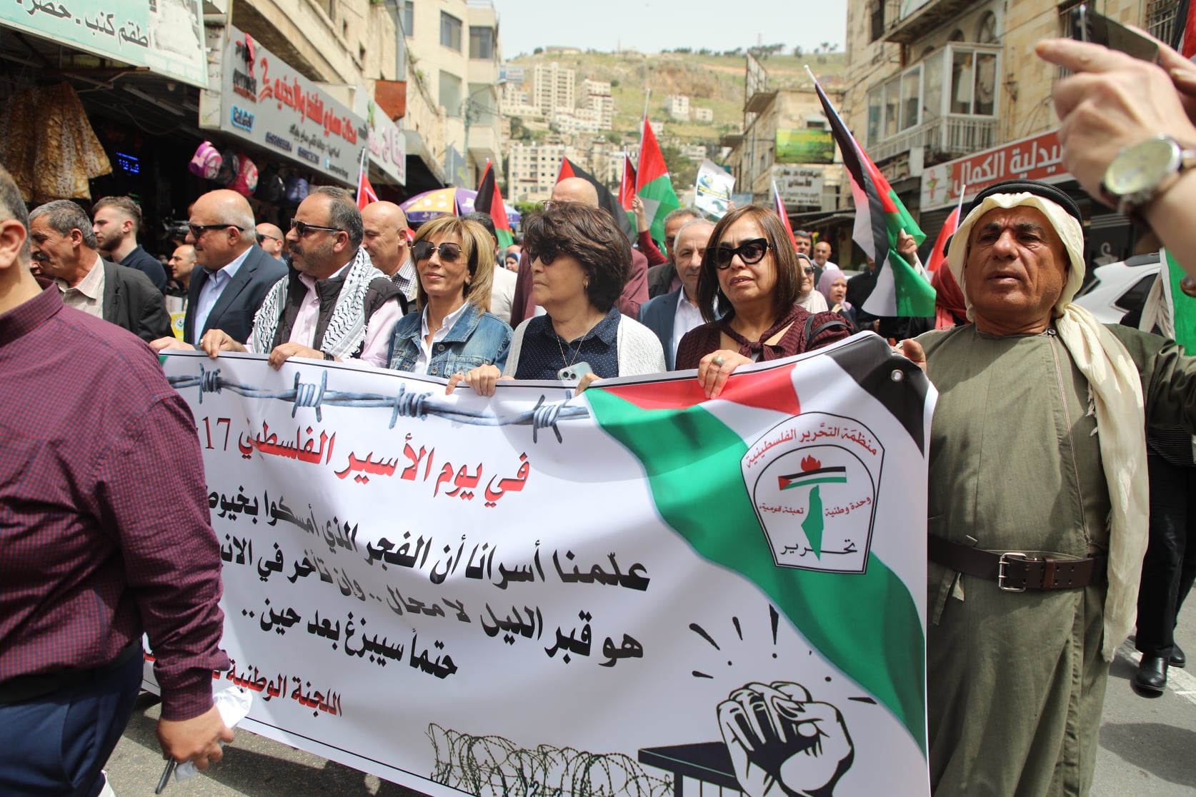 جانب من مشاركة رئيس بلدية نابلس الدكتور سامي حجاوي وعدد من أعضاء المجلس البلدي بالاضافة الى عدد من موظفي البلدية وعمالها في المسيرة الجماهيرية التي دعت لها اللجنة الوطنية لدعم الاسرى، لاحياء يوم الاسير الفلسطيني والتي انطلقت من ساحة اطفائية بلدية نابلس بمشاركة جماهيرية ورسمية من مختلف مؤسسات مدينة نابلس دعما واسنادا لاسرى الحرية في السجون الاسرائيلية.